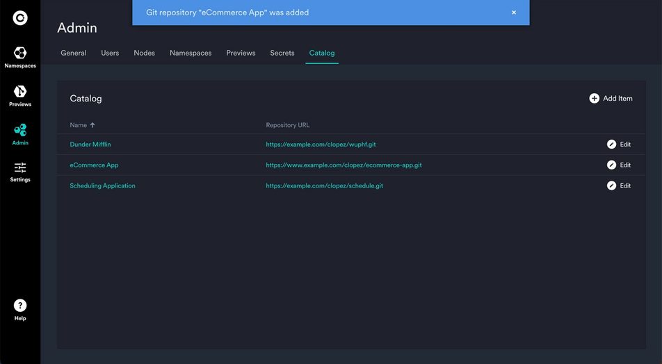 The Catalog feature gives more trust and control to platform, developer experience engineers and administrators and the ability to build a great developer experience. At the same time the Catalog provides a more seamless, frictionless workflow to help developers get started with their work.