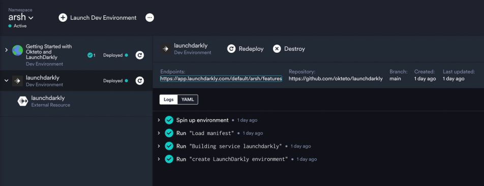 Check out this video demonstrating the benefits you get from using LaunchDarkly dashboards as an External Resource in Okteto: